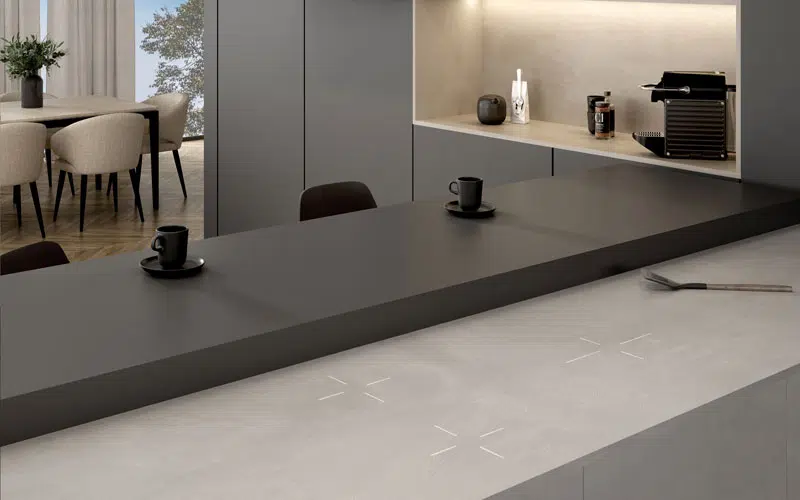 Una de las características más destacadas del porcelánico ABK STONE es su capacidad para integrar la inducción invisible en la encimera. Esta innovadora tecnología permite tener una placa de inducción oculta justo debajo del porcelánico, brindando un aspecto limpio y minimalista a la cocina.