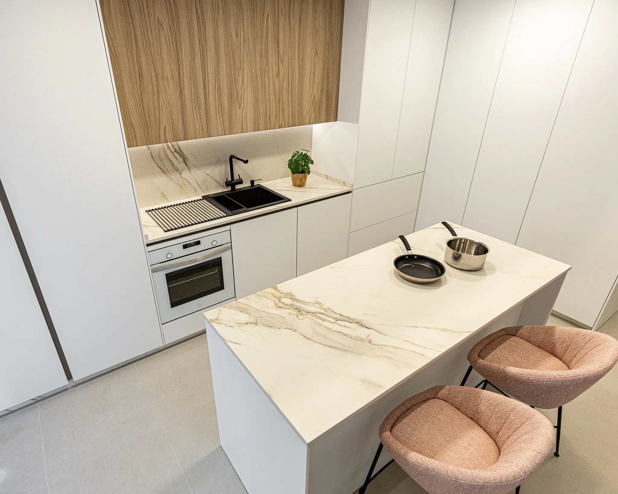 Cocina con isla blanca y negra