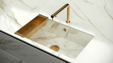 Inspirado en la estética del mármol más sofisticado, Calacatta Borghini destaca por su majestuoso diseño en el que sus marcadas vetas crean un elegante juego de contrastes confiriendo una estética lujosa y con mucho carácter a cualquier espacio. Este modelo recrea gráficamente, y en perfecta continuidad, las vetas de la superficie de la piedra natural tanto en la superficie, como en el propio espesor, gracias a la exclusiva tecnología FULLVEIN3D.