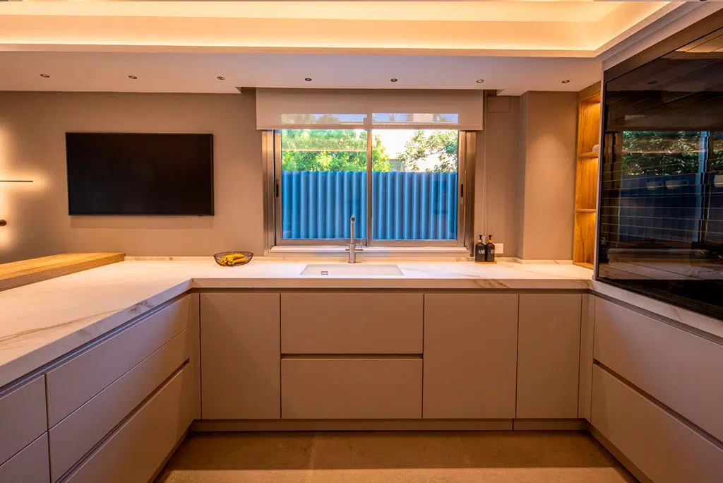 Cocina en L moderna y funcional realizada por el Estudio de Interiorismo Integral BURAGLIA, un referente de las reformas de cocina en Valencia.