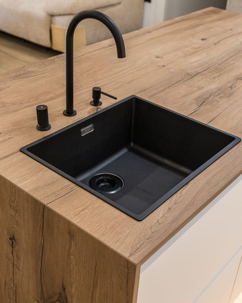 Diseñada para una vivienda particular, esta cocina porcelánica efecto madera destaca por su armonía entre funcionalidad y calidez estética. El modelo Essence Avana de ABKSTONE, aplicado tanto en la isla central como en los frentes de trabajo, reproduce fielmente la textura y el veteado de la madera natural, con las ventajas técnicas del porcelánico: resistencia, durabilidad y fácil mantenimiento.